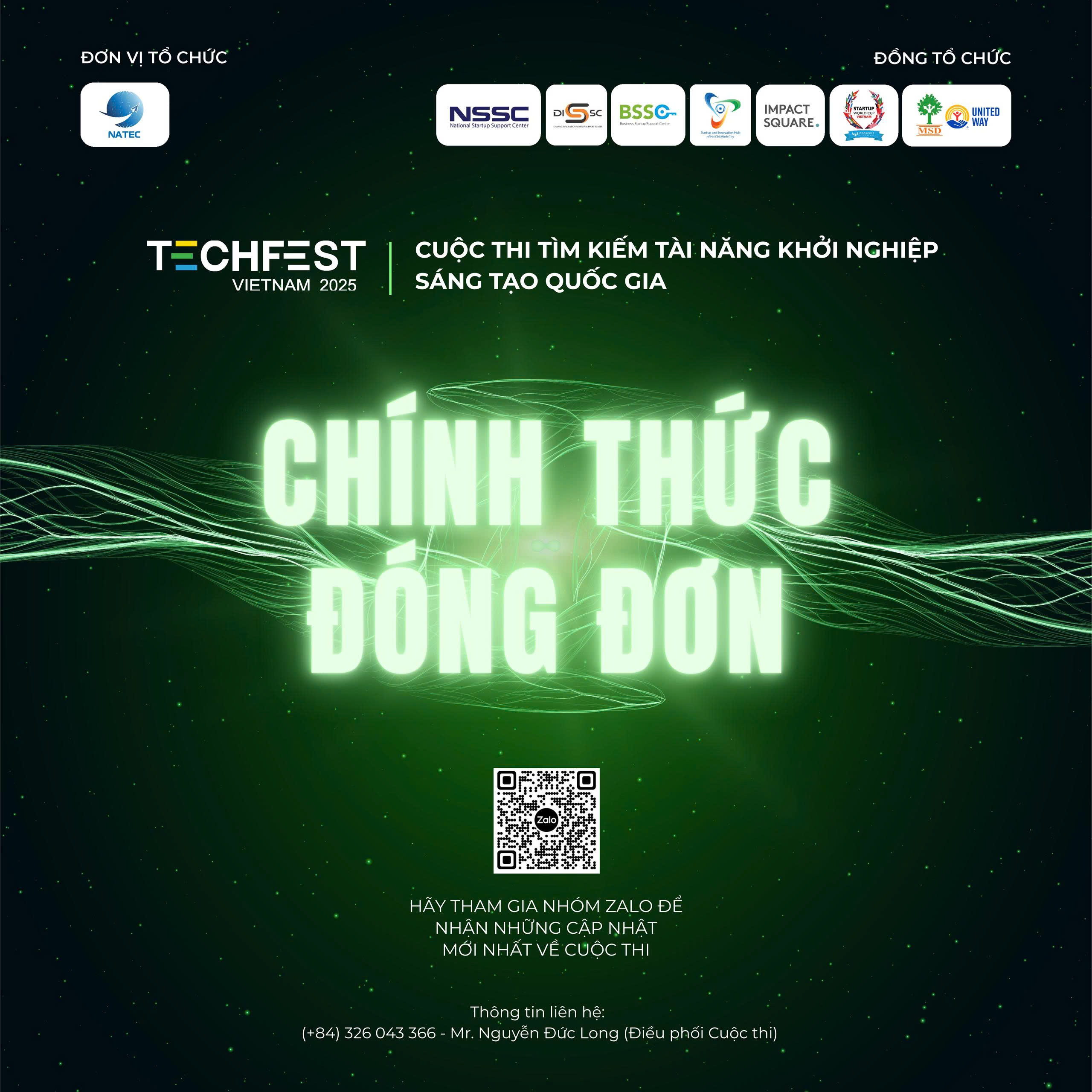 Tham gia cộng đồng Zalo TECHFEST CONTEST 2025 để cập nhật các thông tin mới nhất về cuộc thi: https://zalo.me/g/mbxtfq592.